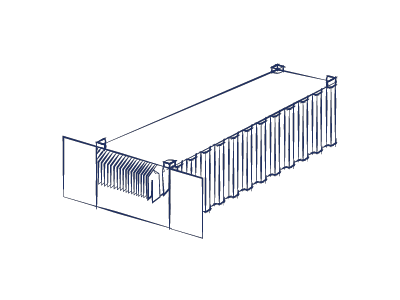 Garments on hangers or GOH containers come fitted with either a bar or string system inside that allows items to be hung on coat hangers. They offer a bigger internal load capacity and since items are shipped on hangers, handling costs can be reduced.
